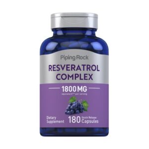 Resveratrolo 1800mg Piping Rock: antiossidante potente per cuore, cellule e longevit脿. 180 capsule a rilascio rapido. Supporto quotidiano
