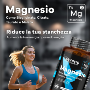 Magnesio Completo Sevens con 4 forme ad alta biodisponibilit脿. 418 mg per dose. Aiuta energia, sonno, muscoli e