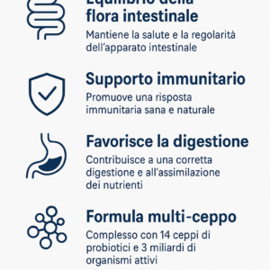 Probiotico giornaliero 25 miliardi di CFU favorisce digestione e difese immunitarie. Con probiotici studiati e capsule a rilascio