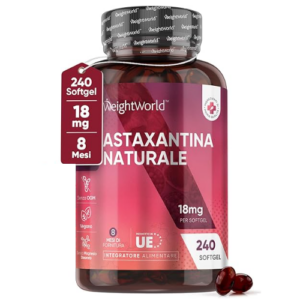 Scopri l'Astaxantina Pura 18 mg di WeightWorld, un integratore naturale ad alto dosaggio, ideale per chi cerca un
