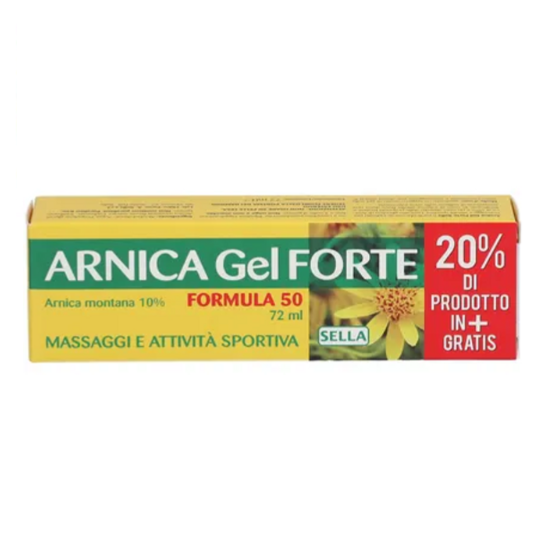 Gel Sella Arnica 10%: sollievo rapido e naturale per dolori muscolari, contusioni e traumi. Assorbimento veloce, non unge. Tubo da 72 ml, made in Italy.