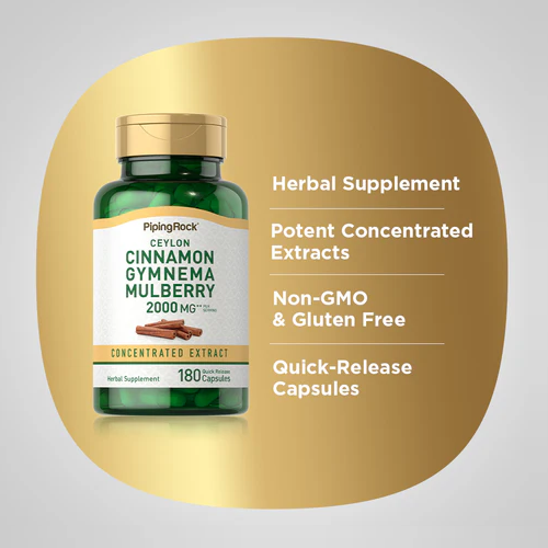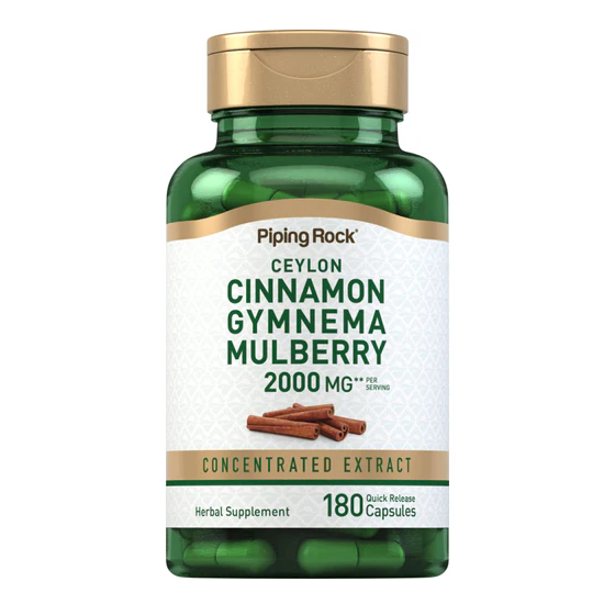 Complesso PipingRock Cannella Ceylon, Gymnema e Gelso 2000 mg: aiuta glicemia, controlla fame di zuccheri e supporta metabolismo. 180 capsule rapide.